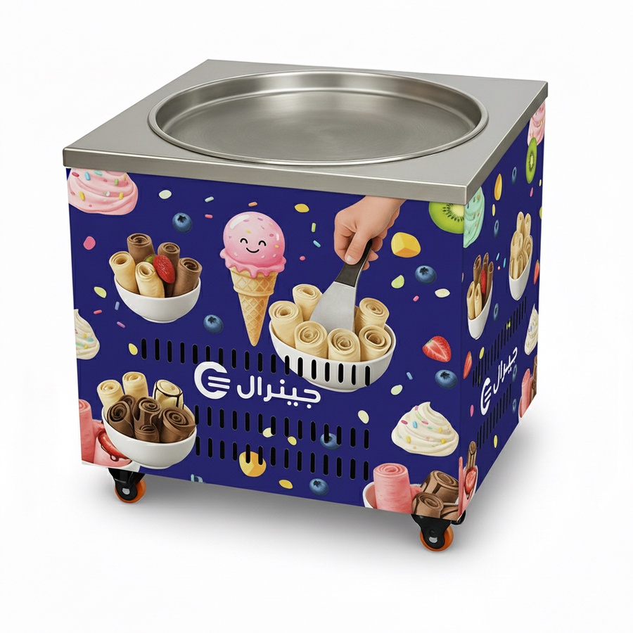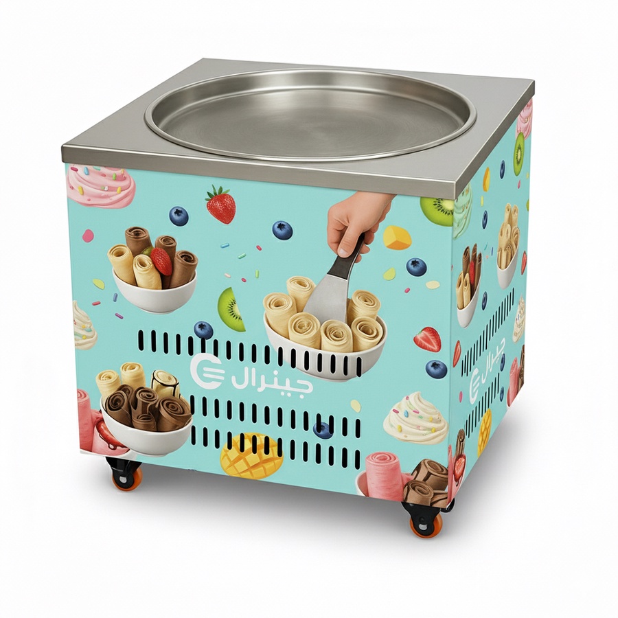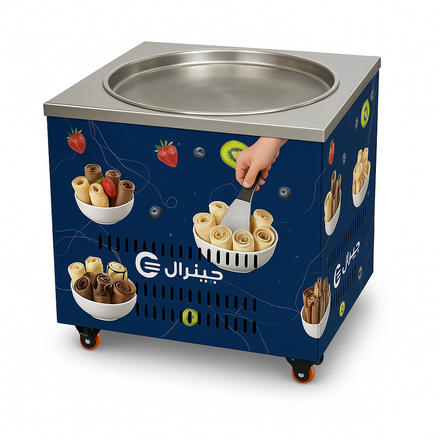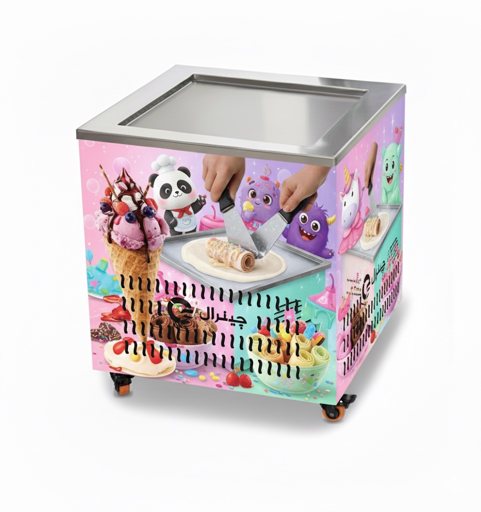 ج.مماكينة آيس كريم رول تجارية عالية الكفاءة، مصممة خصيصًا لأصحاب المشاريع والمطاعم والكافيهات.